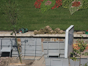 Поливом цветочных часов никого не удивишь. А вот пересадка деревьев на тротуаре рядом с цветочным склоном выглядит уже забавно. В контексте "за день до открытия" это напоминает армейские истории про покрашенные перед приездом начальства деревья.